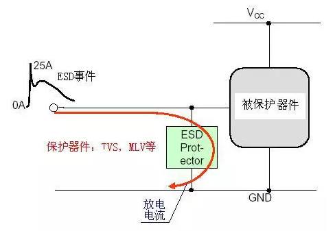 常用的放电器件有TVS,齐纳二极管,压敏电阻,气体放电管等。如图